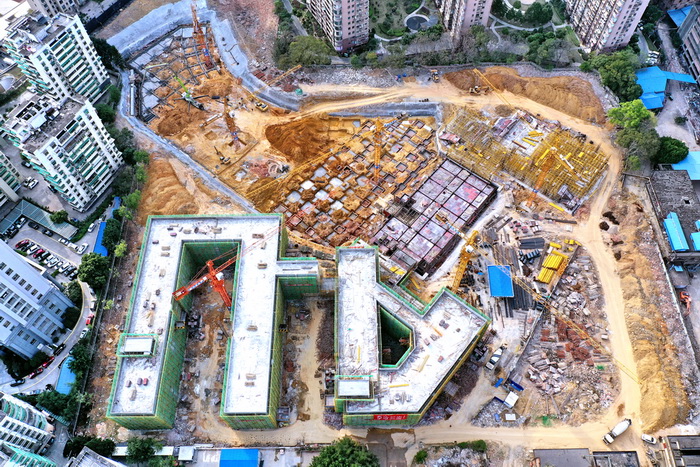 截至目前,沪明小学1、2号教学楼封顶并完成砌筑墙体完成60%,3号楼一层结构施工完成80%,4号楼一层结构施工完成80%,运动场地下室基础完成50%。