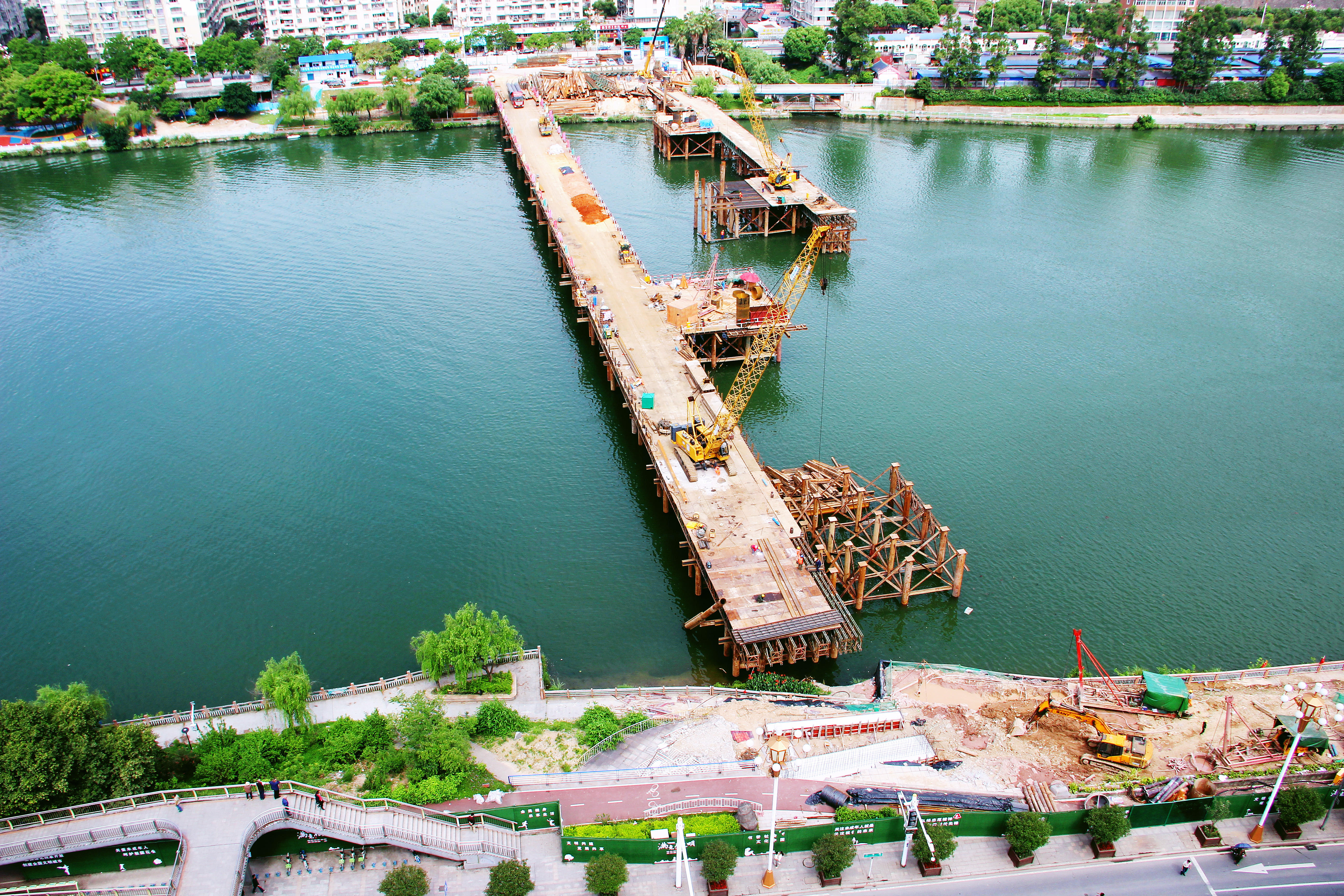 由市城发集团负责建设的列东步行桥项目,经过紧张有序施工,目前钢便桥及水上施工平台搭设基本完成,标志着项目正式进入主体施工阶段。
