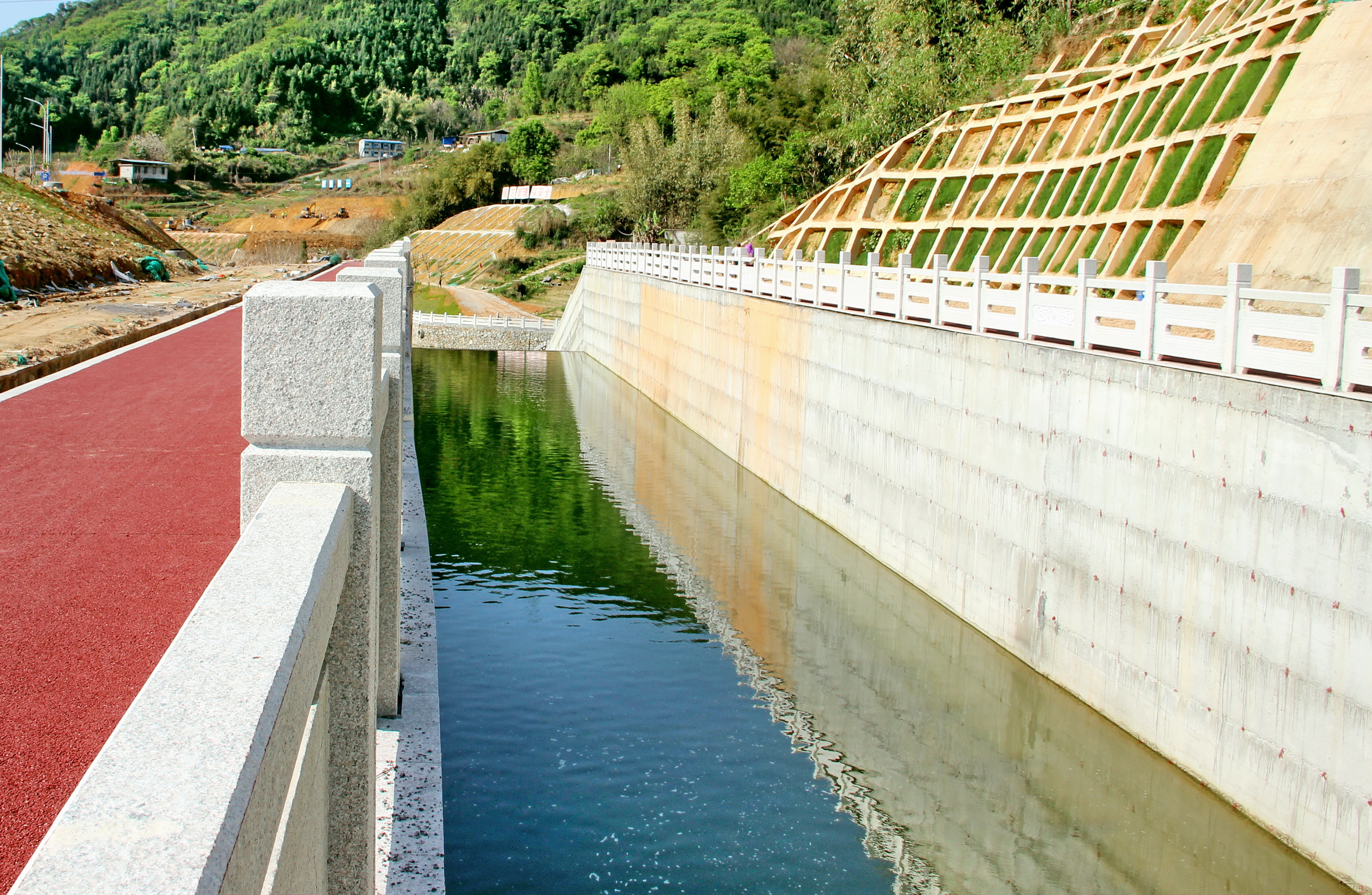 贵溪洋溪水系先后经过抢险段及后期整治(项目全称为贵溪洋快速通道至沙溪汇合口段河道整治工程),河道落差41.9米,综合整治长度1045米,其中:明渠2段、箱涵1段。
