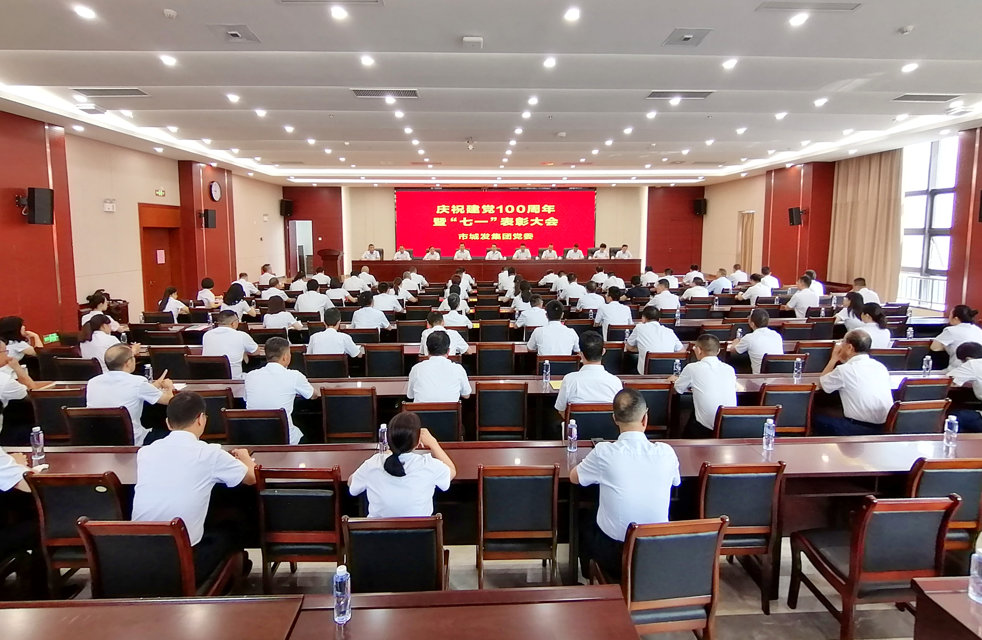 6月29日上午,市城发集团召开庆祝建党100周年暨“七一”表彰大会,表彰集团优秀共产党员、优秀党务工作者和先进基层党组织。集团领导班子成员、集团所属党委(支部)书记、受表彰人员、2021年集团新发展党员、集团各部(室)、项目部、子公司负责人、集团党委直属支部全体党员共90余人参加会议。