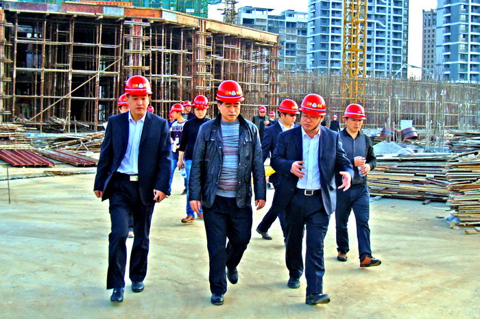 董事长郭正青一行先到项目现场实地了解工程进展,对工程施工进度能按责任目标有序推进表示肯定。随后,郭正青对项目工程进展提出四点要求:质量要把关,进度要加快,资金要节约,管理要加强。同时因碧水庄园楼盘预售在即,他要求抓紧做好楼盘小区园林绿化景观,争取在开盘前展示,并且要加大广告宣传力度,掌握节点策划销售活动,增加春节期间蓄客量,不断优化销售方案,确保开盘顺利。